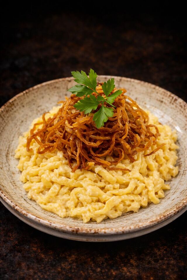 Geschmorte Lammkeuel mit Rosmarin & Knoblauch, Bärlauch-Spätzle, kräftiger Jus